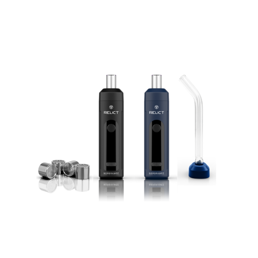 Published 02.03.2026. Size: 1000 × 1000 in Norddampf Relict Vaporizer Deep Black+ starglass curved glass mouthpiece + 4 dosing capsules