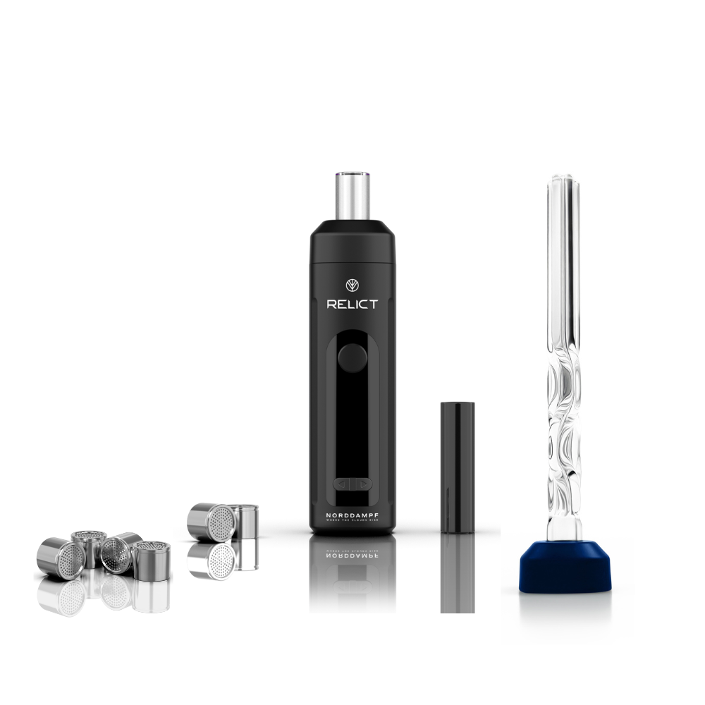 Norddampf Relict Vaporizer Deep Black+ Twisted Glass Mouthpiece + 4 Dosing Capsules